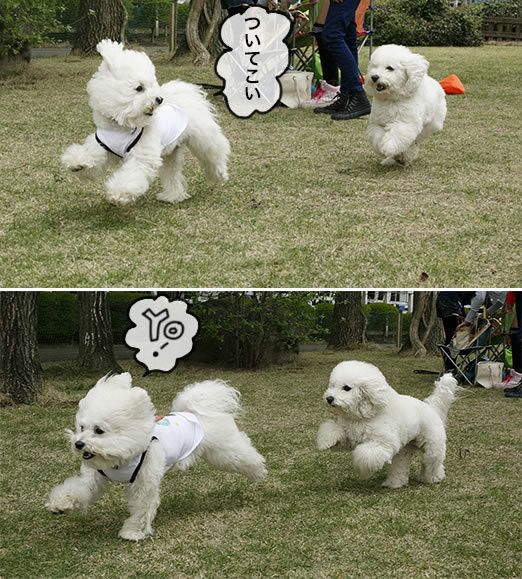 とくに、1才前後の元気なワン友と走るのが大好きみたい。