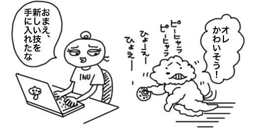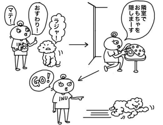 “おすわり・マッテ・GO!”の合図をしないと次のおもちゃを