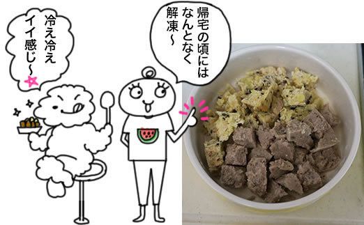 ワンバーグと鶏の頭のテリーヌは、お散歩前に冷凍庫から
