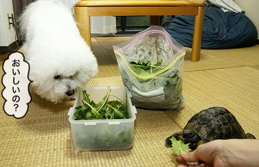 でもいーよね!ワンコにカメ、甘やかしてナンボよね!