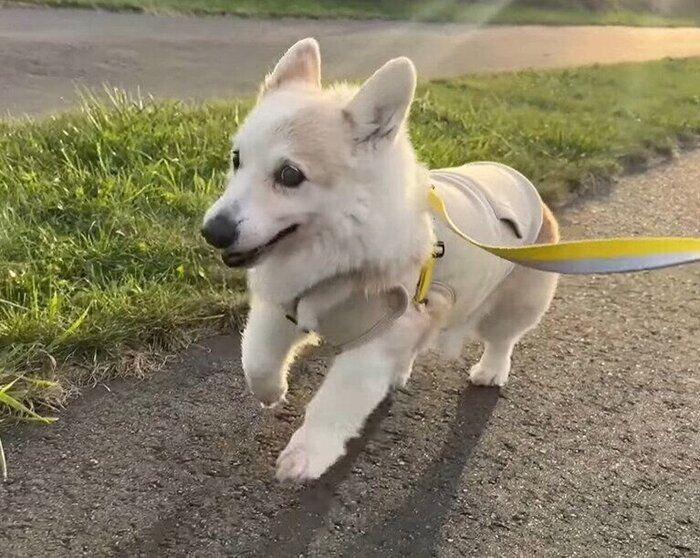 15才のコーギー、ノエさん。後輩犬のモナちゃんと、広い緑地をお散歩します。ママさんいわく、「こう見えていつもよりはしゃいでいる」のだとか。テンションが上がったのか、ポテポテと頑張って走りだします! 一生懸命走っている姿が愛おしい動画です。