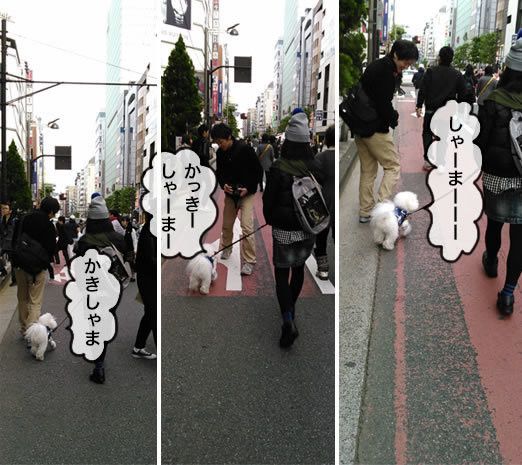 マシューは意地でもカキさんの隣が歩きたいみたい…