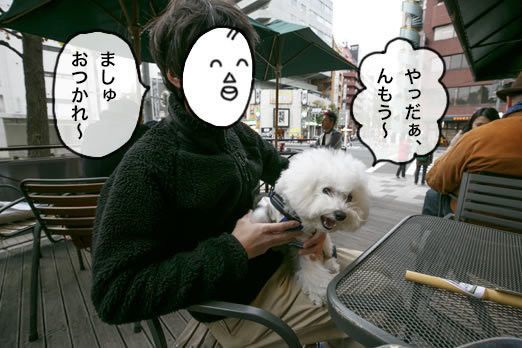 カキさんのひざの上で、すっかりゴキゲン回復〜。