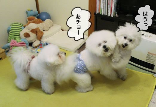 ひとまず、3ワンもみくちゃになりながら