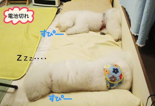 いっぱい遊んでゴハンを食べたら電池切れ〜。