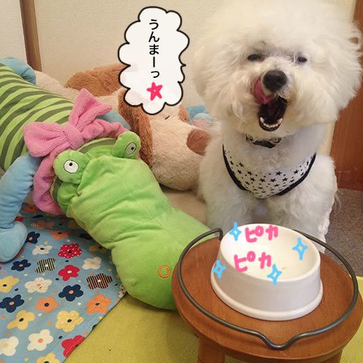 お皿もピカピカになるまでペロペロ。