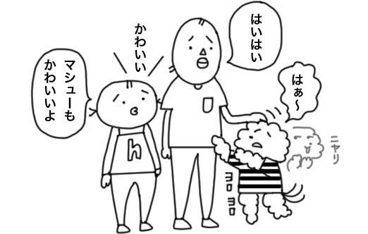 わざとらしく悲しい顔してふたりのもとへ甘えにいっちゃって。チヤホヤしてくれる人はわかってるようで。こういう知恵は存分についたわけね、やれやれよ。