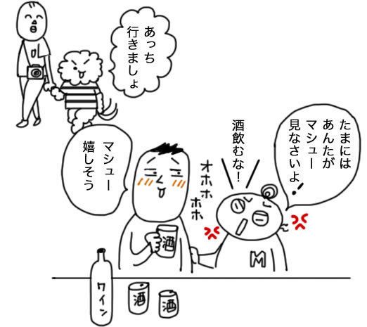 なかなかこの連載に登場しなかった単身赴任中のもうひとりの飼い主は、わざわざ帰京してこのパーティに参加したってのに…想像通りなんだけどね、これ↓