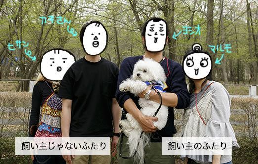 ワンコと飼い主家族が参加したこのBBQパーティ、マシューは飼い主じゃないふたりも引き連れて4人もの大人に囲まれて参加しました。