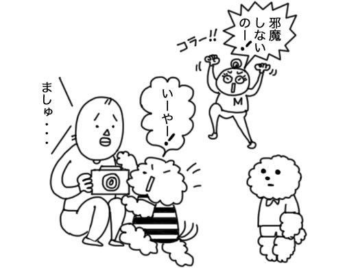 カキさんがカメラをのぞいて他のワンコを撮ろうとすると、
