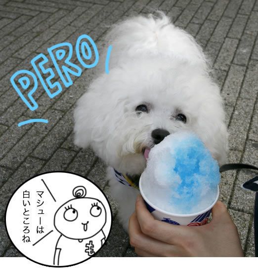 あちこちのお祭り会場でお散歩休憩はかき氷で。