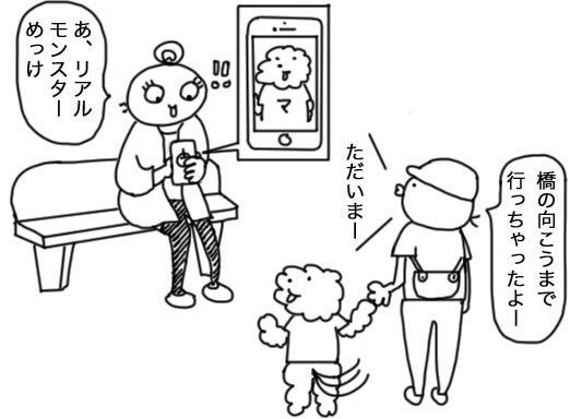 歩きスマホは危ないよ!って注意をしたら、「遊歩道でしかやらないもーん」だって!確かにマルモっさんは機械のようにサッと移動してははじっこ寄って静止、ブツクサ言いながらゲームに興じている。