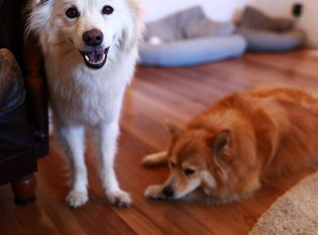「おやつ」を知る先住犬と、まだ知らなかった新入り子犬。キラキラ笑顔と真顔の対比が話題に。成長とともに変化する2頭の関係性を紹介します。
