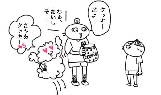 トモの無視っぷりには慣れてきたけど、そろそろ連日のオヤツ作戦の成果が出てほしい。「ねぇトモ、昨日のお菓子はおいしかった?マシューと買いにいったんだよ?」