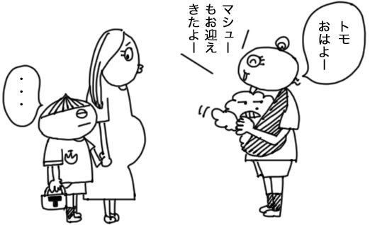 朝と夕方、マシューをスリングに入れてトモをお迎えに行くんだけど、マシューはトモが苦手でトモもマシューが苦手。でもなんだろう、そこまで?ってくらいお葬式みたいな顔されちゃうんだよ。