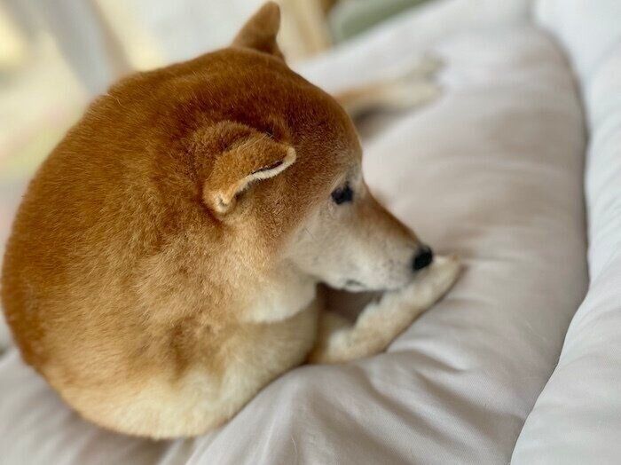 一瞬トイレに行ったすきに、寝ていた場所をしれっと奪われる——。4才の柴犬・ももちゃんの“あるある”な行動を紹介します。