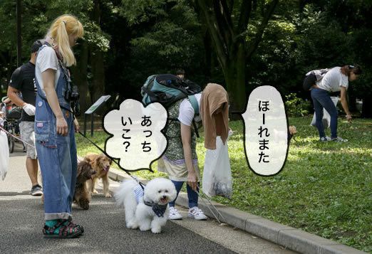 たくさんワンコがいて、マシューはあっちっこち行きたい、私は次から次にゴミを発見しちゃうしで、マシュー、じっとしてて!ダメだこりゃ、マシュー邪魔!