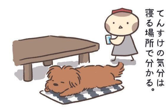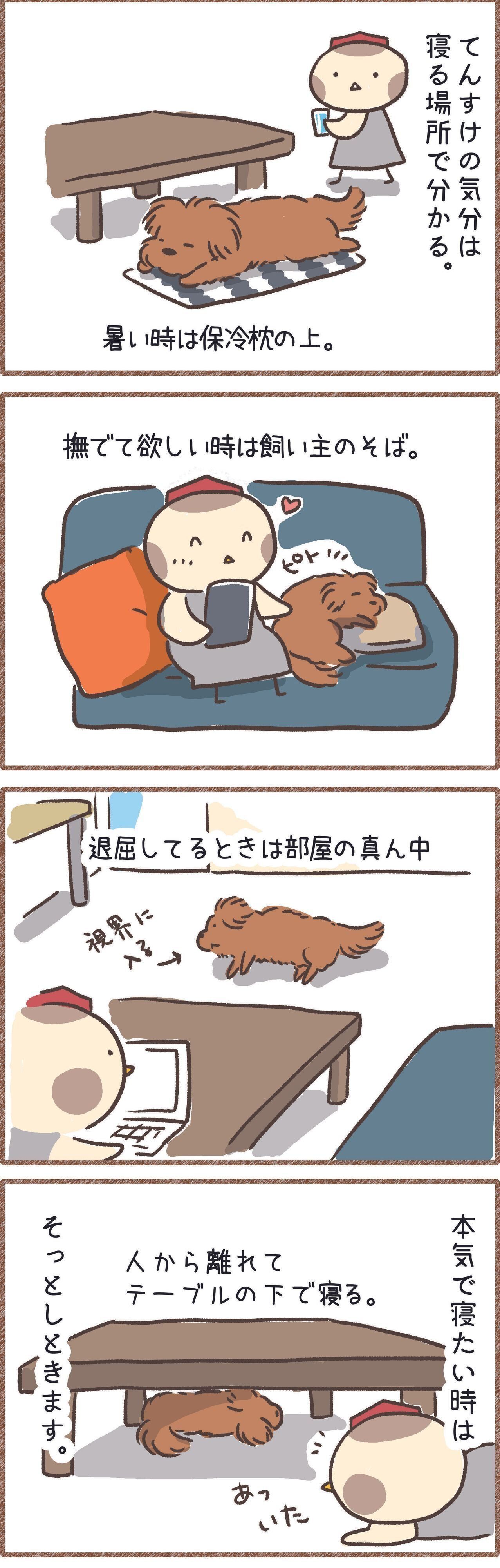 寝る場所でわかるその時の気分|連載「こぐま犬てんすけ」vol.205