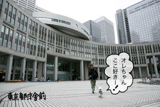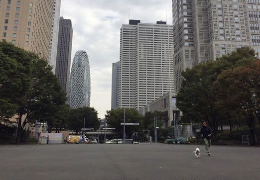 涼しくなってマシューのお散歩エリアがぐんぐん広くなってきたよ。新宿駅の西側、高層ビルが立ち並ぶオフィス街だってお散歩コース。