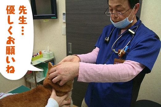 まずは先生が肉眼でこむぎの目を確認。ここで白目の色などをチェックします。