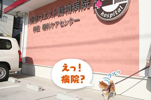やってきたのは眼科ケアセンターを併設している東京ウエスト動物病院です。電車とバスを乗り継いで小一時間、お出かけ気分でこむぎもちょっぴりゴキゲンでした。そう、ここまでは。