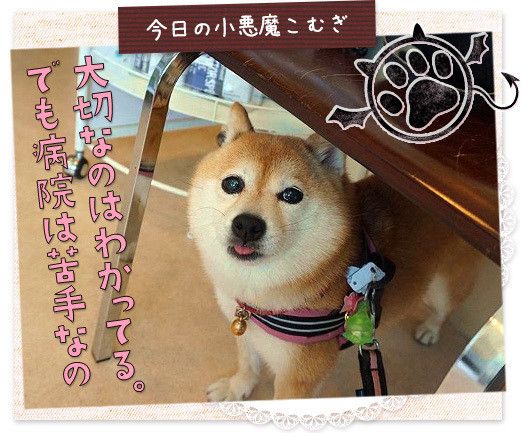 こむぎは子犬のころから診察台に乗っても触られても、注射をされてもめったに吠えないし暴れたことは一度もありません。小悪魔でも、とてもおりこうさんです♪