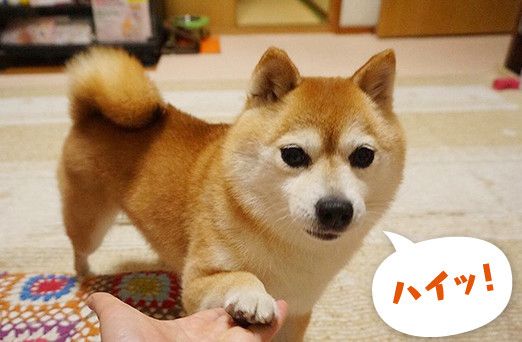 「行きたくてたまらない!」と、何度も得意げにオテをするこむぎ。