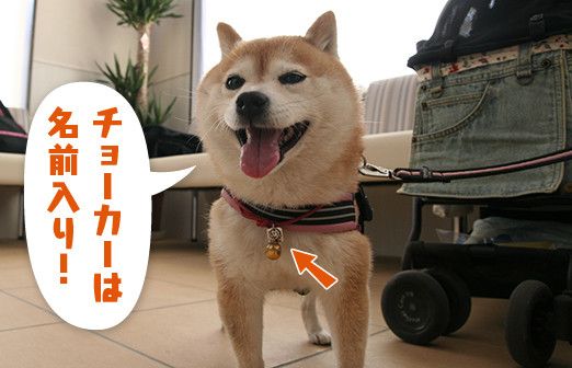 そしてハーネスが外れて迷子になったときのために、散歩やお出かけのときは必ず首輪やチョーカーもいっしょに付けています。