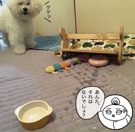 私の目の前でマシューが大技を披露。いつもならごはん皿を投げつけるところを、それだけでは気が済まなかったのかしら、ちゃぶ台返し的な。
