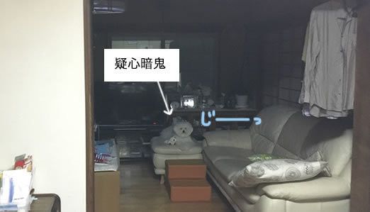 常に私の動きが見渡せる位置でスタンバイ。トイレに行くにも必死に足元にすがってきて、やれやれよ。