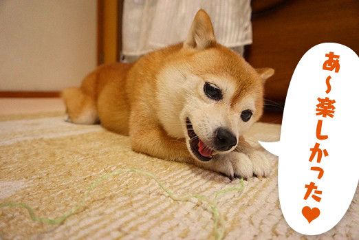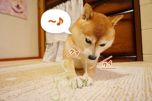 こむぎさん、引っ張ってほどけるのが面白くて仕方ない様子みたい。