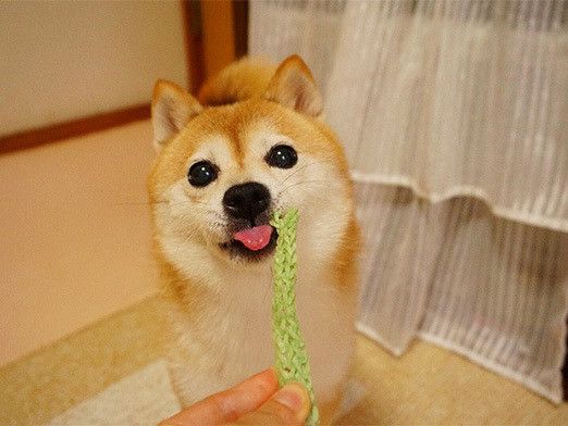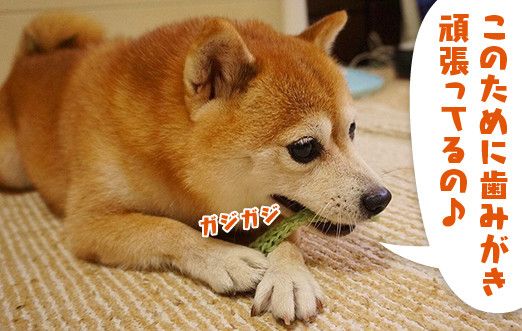 ちなみに布製でひも状の歯みがき効果があるオモチャもありますが、食べれないとわかるのか、プイッとそっぽを向いてしまって興味を示しません。こむぎの欲望は食べることに忠実です(笑)。