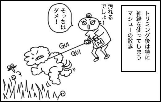 トリミング…それぞれ悲喜こもごもYO…。「マシューとマルモともだち100わんできるかな」
