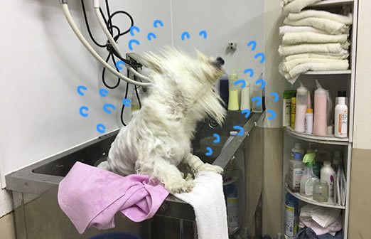 でもマシューにとっては1か月に1回の苦行って感じかしら。今日も無駄な抵抗を試みてはトリマーさんにドヤされての繰り返し。