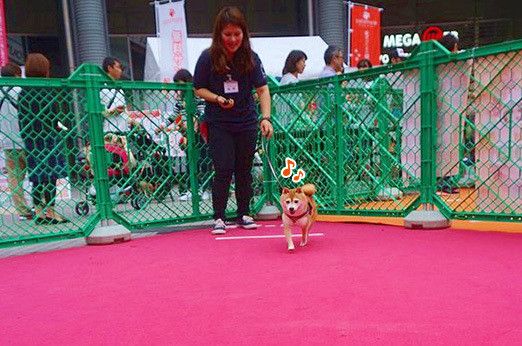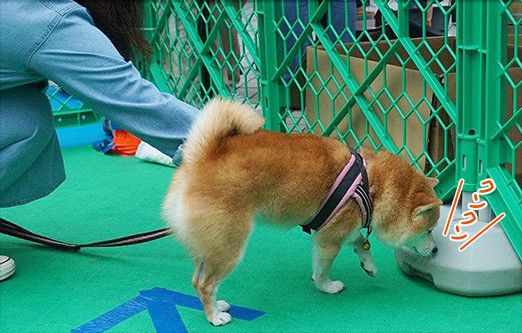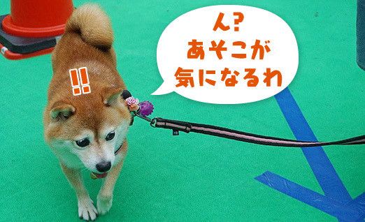 会場には犬がいっぱい! 何か気になるニオイがあったのか途中でニオイ嗅ぎをしてしまったこむぎ。お散歩チャレンジに制限時間はなかったので少し時間はかかりましたが合格です。