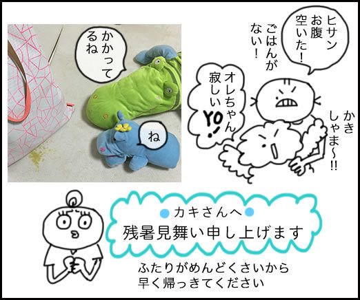 ここ2週くらい、マシューとヒサンの愛しの人カキさんはお仕事で新潟県へ。本当だったら今ごろ帰って来るはずだったんだけど、連日の不安定な天気で仕事が押しているようで…。