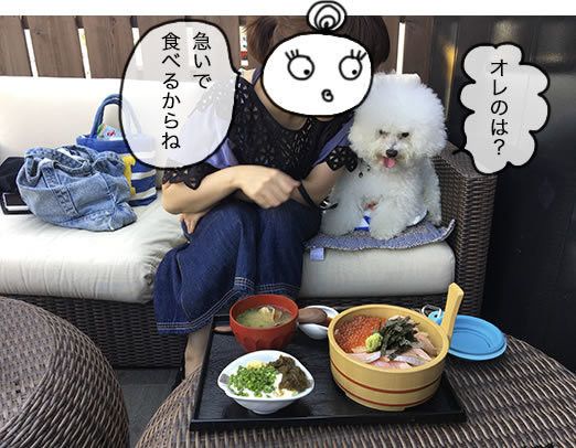 ランチ以外は、マシューは保冷剤を詰め込んだカートから一歩も出られなかったし、夏のお出かけは難しいね…。