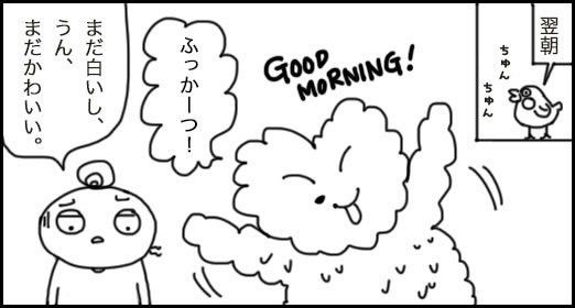 そのためトリミングでふわふわになった頭の寿命は一晩限り。