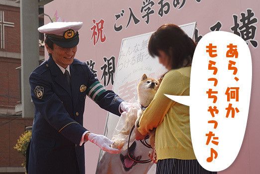 式典の後は、警視総監さんと新一年生、保護者の方たちは学校近くの交差点に移動します。それを見送ったこむぎと私は、少しの待ち時間を使って写真を撮らせていただきました。