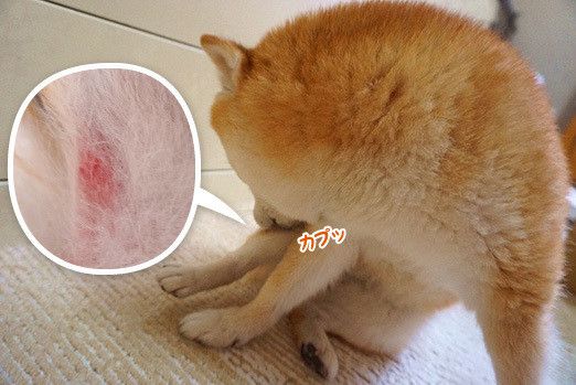 毎年この時期になると困るのは、湿度が高いことが原因でこむぎが体をかゆがるようになること。しきりに足を噛むときがあり、ひどいと写真のような状態に。