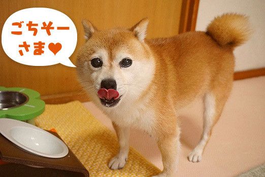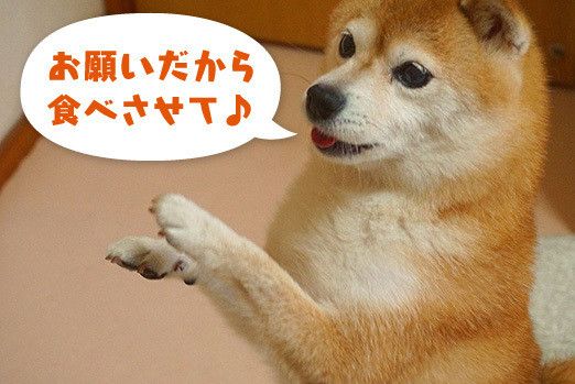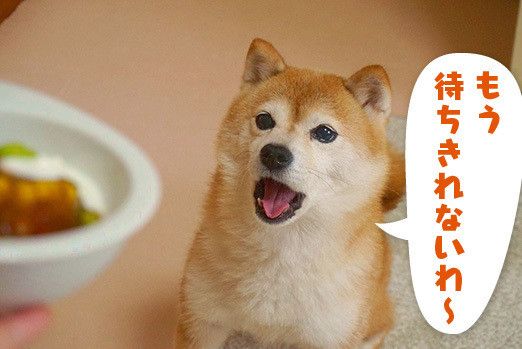 待ちきれないこむぎは舌をチョロっと出したり、後ろ足で立ち上がって「早くちょうだい!」アピール。