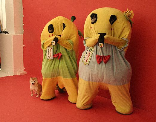 撮影後には、スタンバイ中のふにゃっしーとニオイ交換で交流です。ふなっしーも、ふなごろーも、ふにゃっしーも姿勢を低くしてこむぎに接してくれました。みんなとても優しかったです。