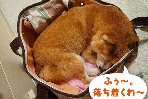 バッグにすっぽりと収まり、満足そうなこむぎさん。でも、横になって寝るにはさすがに狭かったようでほどなく出てしまいました。