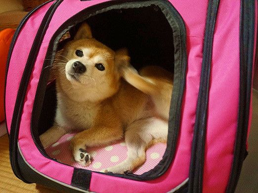 ひとつはお出かけ用のペット用バッグ。これはこむぎを飼い始めた頃から使っていて、ペットカートを購入する前はよくこれに入って出かけていました。