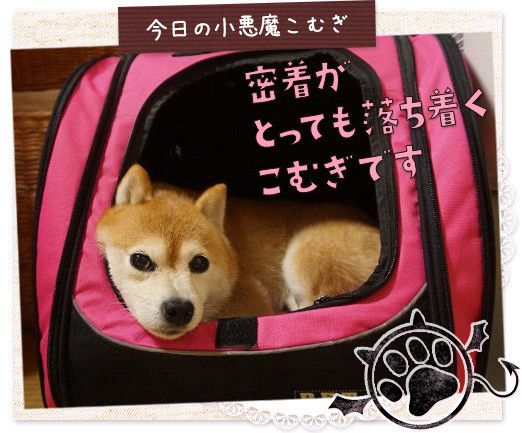 こむぎに慣れてもらおうと部屋の隅に置いてあるのですが、たまーに思い出したようにこの中でくつろぎます。でも、やっぱりちょっと狭そう……狭いところが好きなんて、まるで猫みたい。