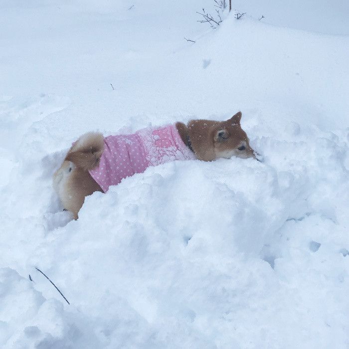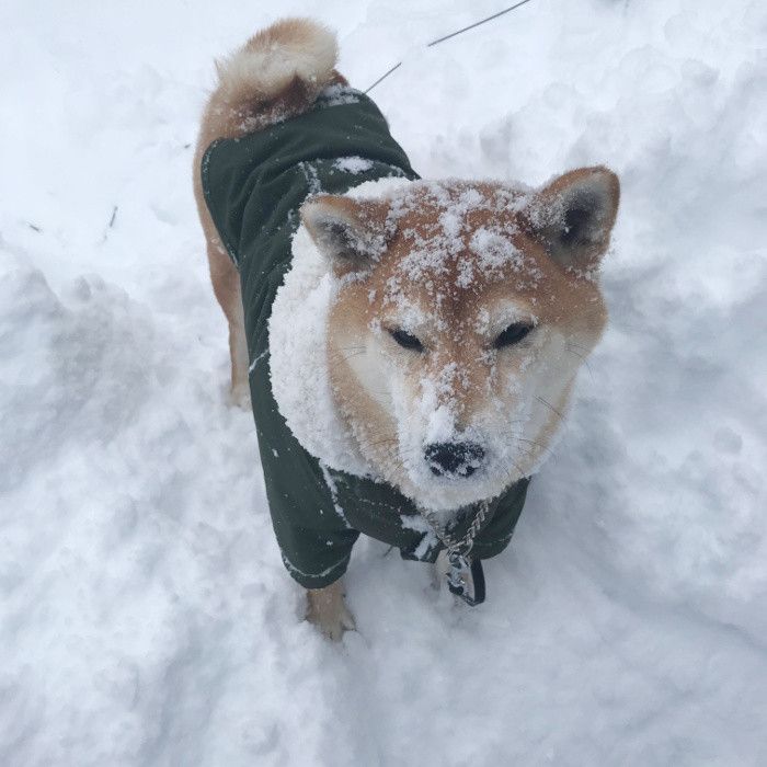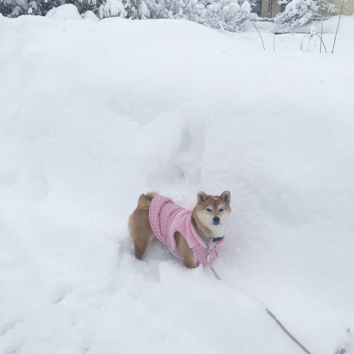 大好きなふわふわの雪にいつもなら大喜びで飛び跳ねるのですが、寒すぎて限界が来たようです、5秒で(笑)