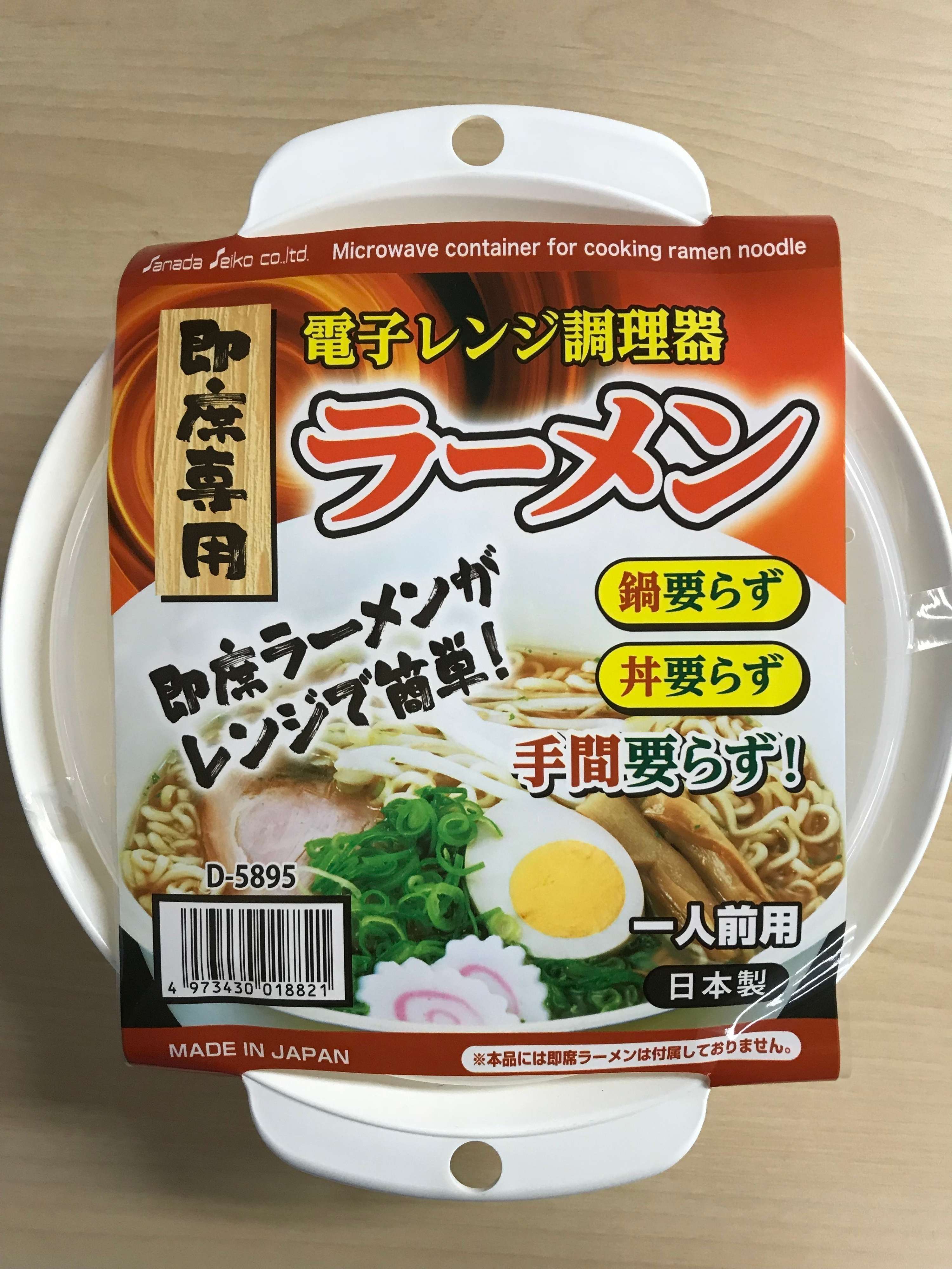 写真はキャンドゥの「電子レンジ調理機ラーメン」。持ち手がついているのも便利です。