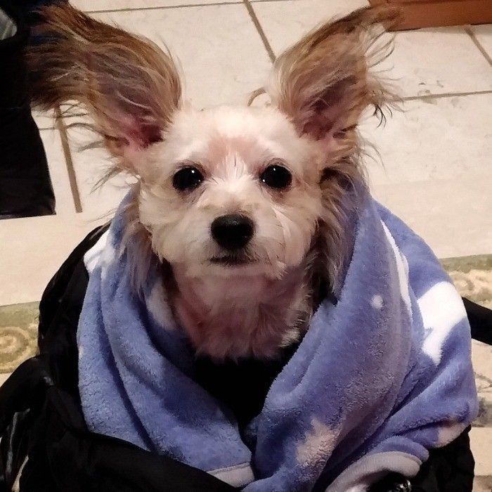 愛犬ティアラくん。ブランケットにくるまってあたたかそう♥