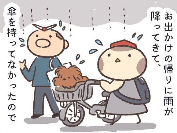 突然の雨から愛犬を守ることに必死で、人間には気が回らない飼い主|連載「こぐま犬てんすけ」vol.206