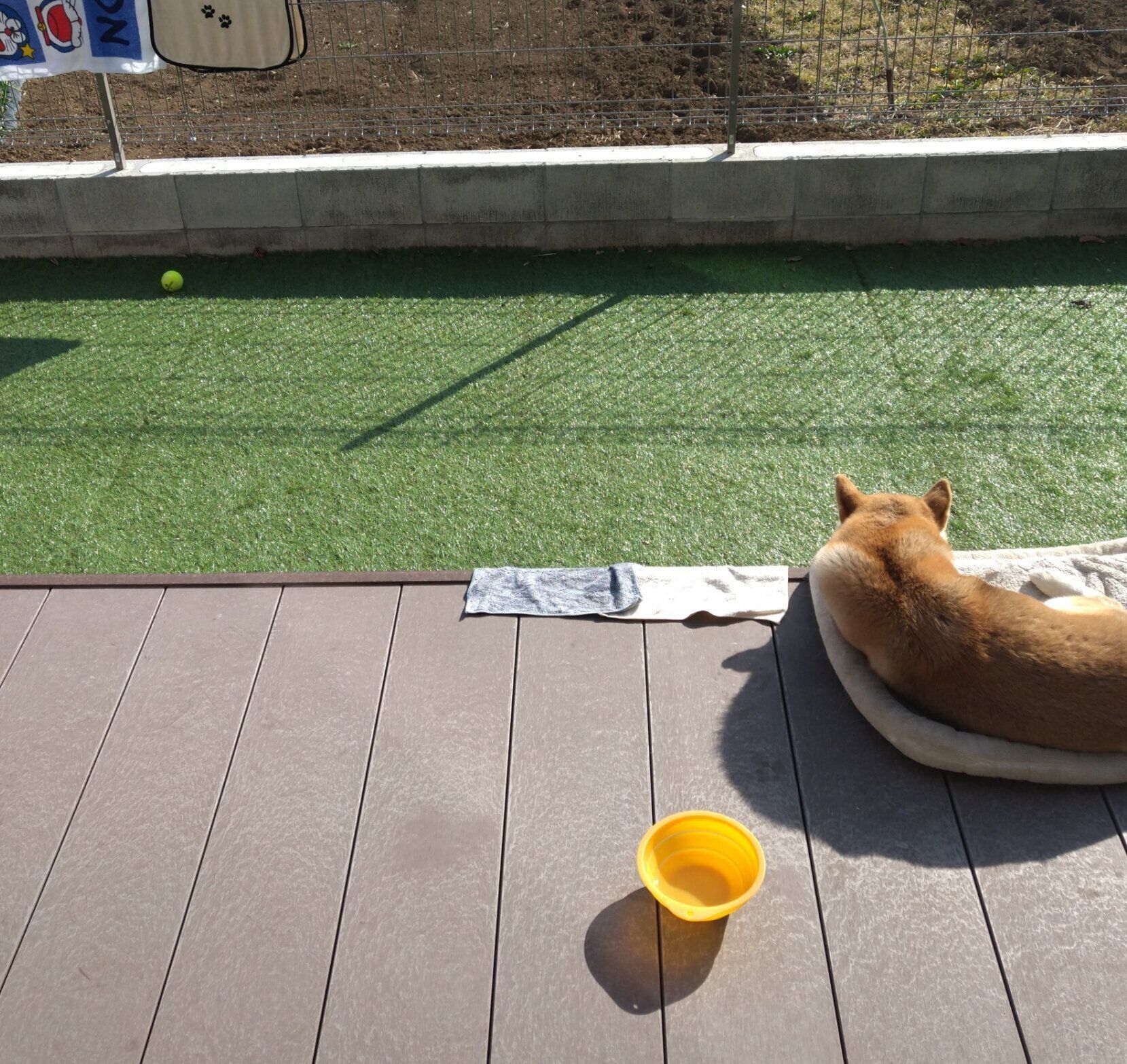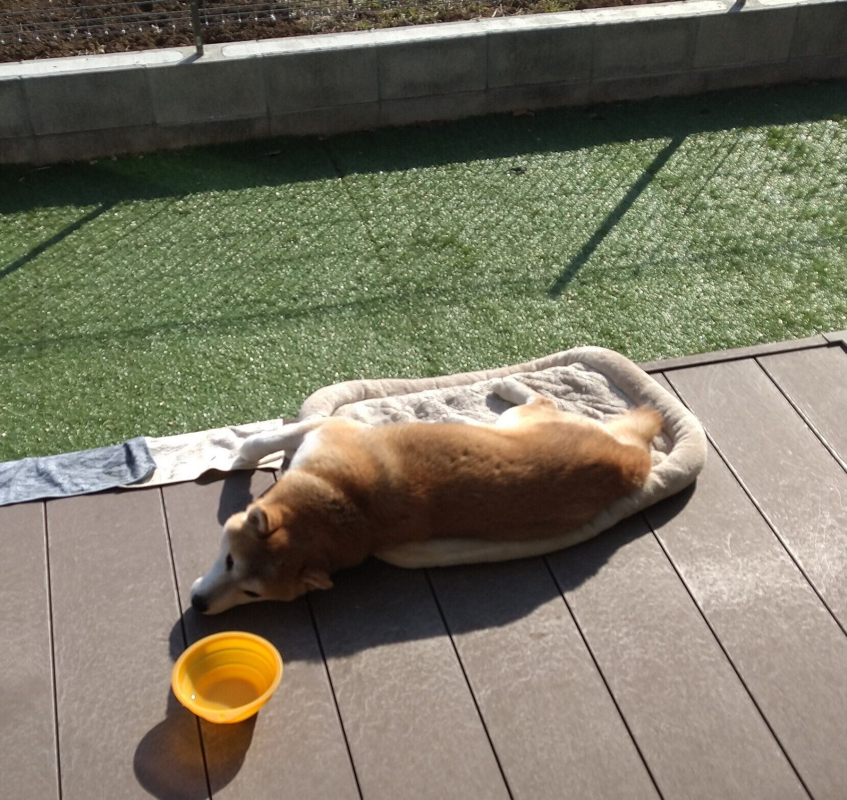 さぁ、湿気よ!なくなれー!と思っていると、タロさんもベットやタオルと同じように太陽にあたります。